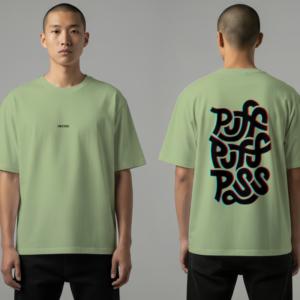Elevate your street style with the Glitch Trip Oversized Tee in Sage Green. Featuring a psychedelic, 3D-effect "PUFF PUFF PASS" back graphic and a minimal "OEEEEE" chest hit, this heavy-weight cotton tee blends laid-back vibes with an edgy, digital-glitch aesthetic.