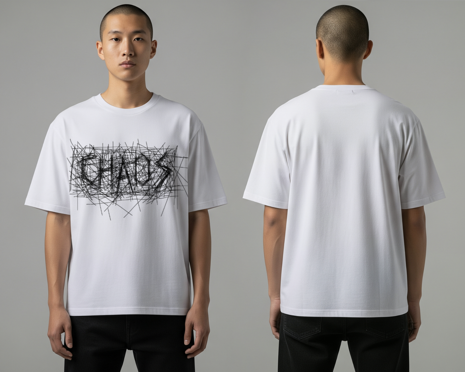 Embrace the beauty of disorder with the Chaos Scribble Oversized Tee. Featuring a bold, aggressive “CHAOS” typography rendered in a raw, hand-drawn scribble aesthetic, this piece is designed for those who find clarity in the noise. The crisp white canvas provides a sharp contrast to the intricate black linework, making it a standout staple for any streetwear rotation.
