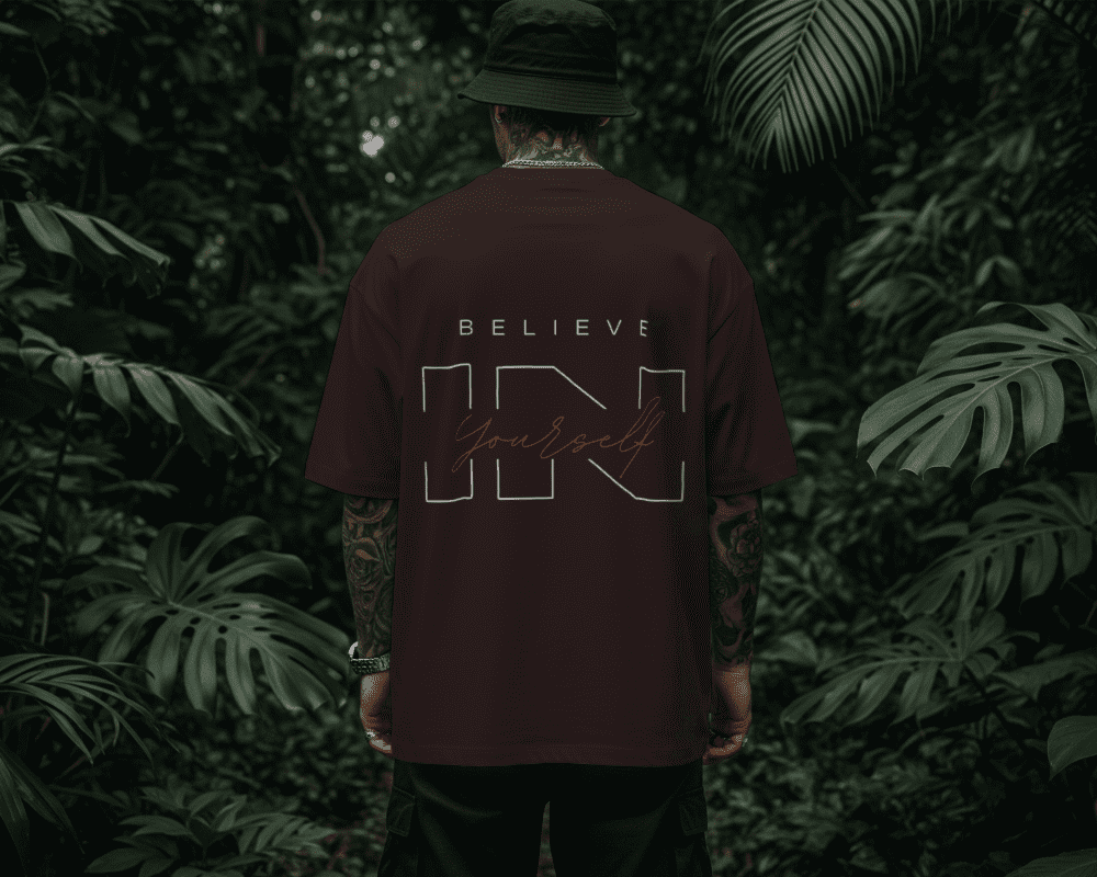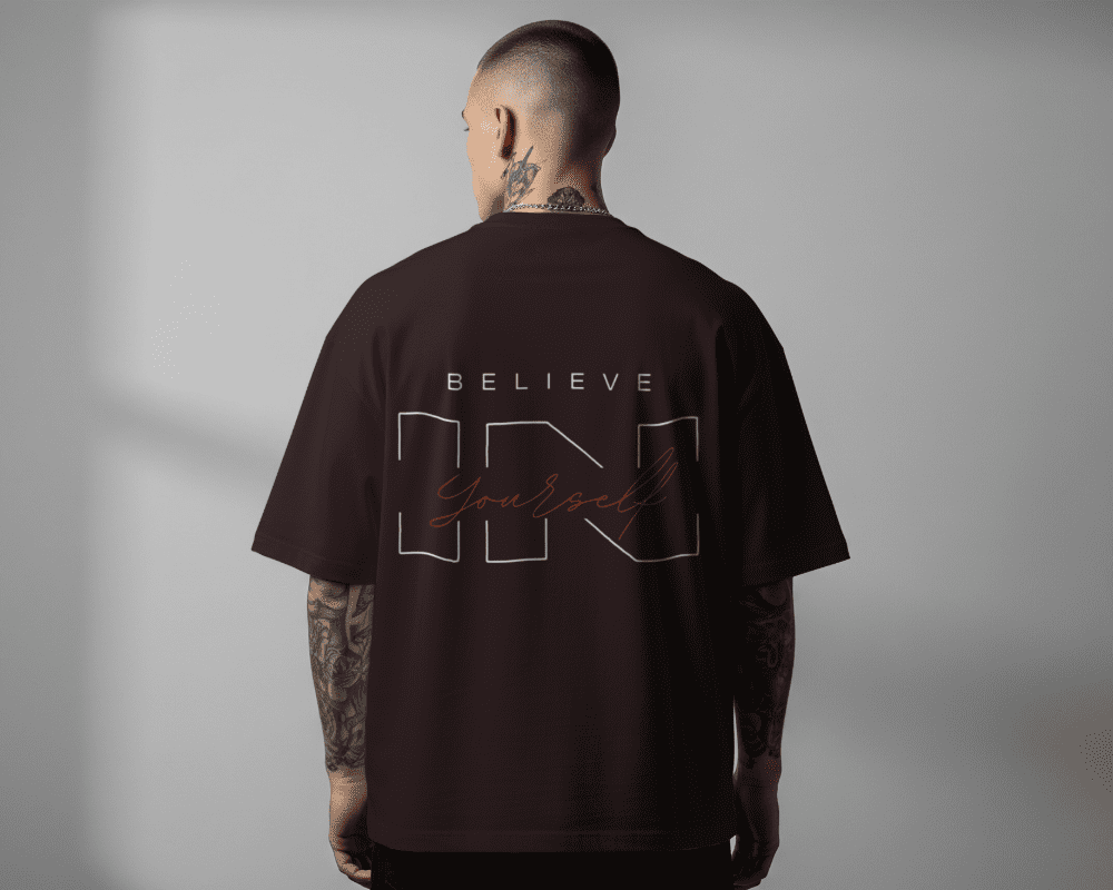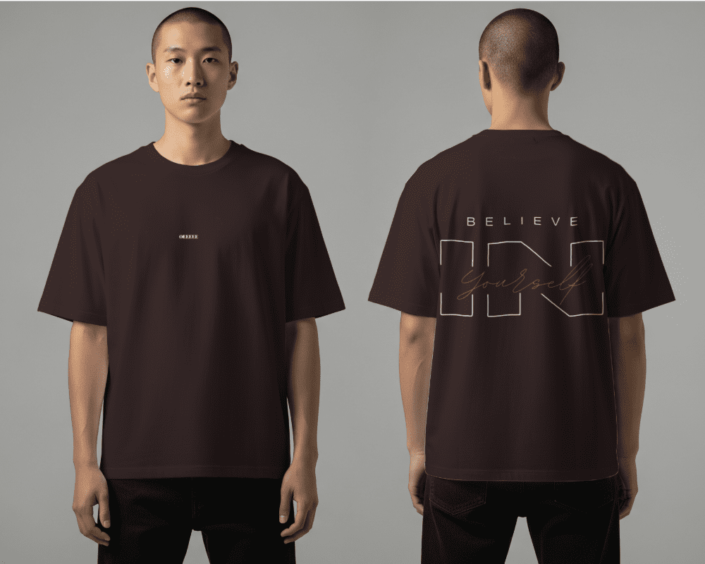 Confidence isn’t just a feeling; it’s a lifestyle. The Essential Belief Oversized Tee is designed for those who value both high-end street aesthetics and a powerful message. Drenched in a rich, dark chocolate/espresso tone, this shirt serves as the perfect canvas for its intricate white and copper-toned graphics.