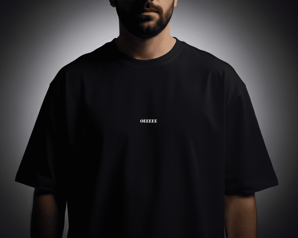 Minimalist Front: The chest features a clean, sharp “OEEEEE” logo in white, providing a sophisticated contrast against the deep black fabric.